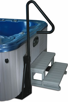This slick handrail's base slides under your spa for easy installation. No holes to drill or screws to attach. The handrail is constructed of durable zinc-coated steel that is super strong and will not rust. Unique locking feature allows the handrail to pivot and lock into position for either entry or exit from your spa. Our handrail measures 57" high and will fit spa cabinets up to 37 1/2" tall. Add the spa side handrail to your spa for safety - without any assembly or installation. Note: May require draining and lifting of your spa for installation. Item