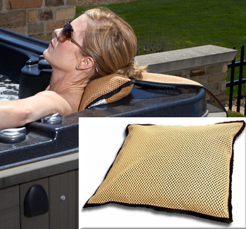 This high quality headrest is extra soft & extra durable. Made of molded super soft PVC and polyester, this pillow will last and last. Unique construction makes out headrest resistant to mildew and quick drying. Heavily weighted strap ensures the pillow stays in place and doesn't fall in the water. Enjoy your spa even more with this quality spa headrest. Available in tan with black trim as shown.