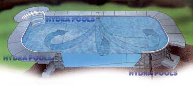 Product excellence is not just a goal for Hydra Pools, it's a necessity. The manufacturer's decades of experience, unbeatable warranty, and dedication to excellence make Hydra Pools the best in-ground swimming pools on the market. Virgin vinyl liners are manufactured by a computer-controlled process for exceptional uniformity and strength. The liners are attractive, easily installed and trouble free. VIEW LINER PATTERNS. Alignment coping by Hydra is specially designed to encapsulate the entire top surface of wall panels, providing precision-engineered alignment. Braces provide high-strength deck-support. The bracing is carefully designed to transfer the deck-weight loading to the vertical wall and anchor stake. Nylon fasterners include nylon bolts, nuts and washers to fasten pool components together with the strength and security of metal hardware. However, they will never rust or corrode. Anchor stakes are rugged and durable. Hydra's anchor stakes assure positive leveling, locking and alignment. Wall systems by Hydra feature structual thermoplastic walls that are molded to exacting specifications based on thorough research and engineering. Each panel has uniform rigidity, flatness and strength derived from the strategic placement of ribs. These panels cannot rust, corrode, rot, crack or splinter. |